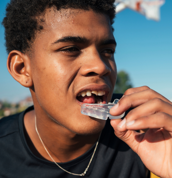 For people who have to wear braces or other fixed orthodontic appliances, it is especially important to have a sports mouthguard that fits them properly. An impact to the mouth can damage the brackets and wires of the braces, and can also cause added cuts and tears to the soft tissue inside your mouth.